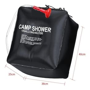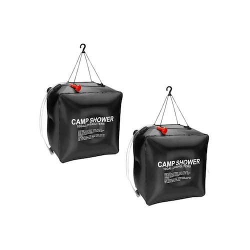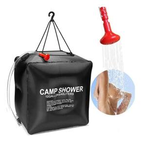 2 unidades de chuveiro de 40 litrosBolsa de ducha solar de 10 galones/40L, aquecimento solar l, bolsa de ducha para acampar, água quente, senderismo ao ar livre, escalada. Feito por materiais amigáveis e teste de fugas ambientais. Os materiais usam seus seguros para a saúde e também fazem com que a bolsa seja duradoura! A bolsa pode transportar facilmente até 10 galões (40 litros) de água para duchar! Fácil de tomar Ducha afuera también almacena agua con tu vida diaria. el material de PVC negro puede abser eficientemente la energía solar para aquecer el agua dentro de la bolsa. Aqueça a água a 113° F (45° C) e 3 horas com luz solar direta. Bolsa de chuveiro portátil com gancho de manga forte. Coloque-o na loja ou rama das árvores. Ideal para viagens de acampamento e durante emergências, quando a água quente não está disponível.Armazenamento leve, dobrável, ahorro del espacio, tamanho compacto e fácil de transportar. Material: PVC de 0,4 mm de espessura. Capacidade: 40L Tamanho: aprox. 40x28x40cm Comprimento do cabo de nylon: 150 cm Cabeça de chuveiro: 8 cm Mangueira: 65 cm O pacote inclui: 1 x bolsa de banho 2 x cabos de nylon 1 x manguera con cabezal de ducha
