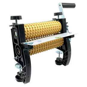 INFORMAÇÕES GERAIS DO CILINDRO AMACIADOR EM NYLON - Cor: Laterais e engrenagens pretas, rolos marrons e manivela dourada. - Material: Nylon. - Regulagem: A distância entre os cilindros pode ser regulada entre 0 mm a 10 mm. - Fixação: Por morsas, adaptando-se em diversos tamanhos de mesa. - Tamanho dos rolos: 17 cm de largura. - Funcionamento: Manual. - Pode ser utilizado em sua residência ou estabelecimento comercial.