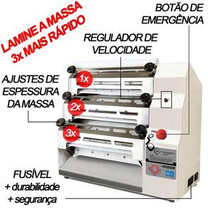 O cilindro laminador de massas elétrico é o único da categoria com 6 rolos, dessa forma você pode laminar, cilindrar e sovar a sua massa 3x mais rápido do que o normal, otimizando tempo, aumentando sua produções e rentabilizando muito mais!
