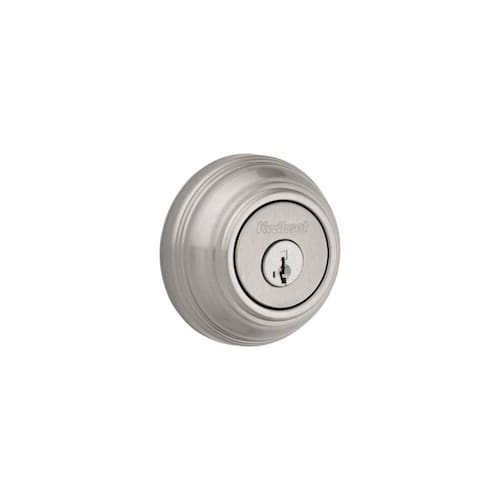 Kwikset Deadbolt, grau de segurança: 1, número de cilindros: 2, tipo de chaveta: KW1, tipo de chave: K4, tipo de golpe: canto redondo, tamanho do encosto: 2-3/8 a 2-3/4 polegadas, tipo de trava: canto redondo, canto quadrado, espessura da porta: 1-3/8 a 1-3/4 pol., Manipulação da porta: reversível, universal, Comercial/Residencial: residencial, metal, níquel acetinado, dimensões: 2-5/8 polegadas A x 2-5/8 polegadas W - Tecnologia SmartKey: sistema de entrada sem chave para maior segurança - Acabamento em níquel acetinado: estilo moderno com acabamento em níquel escovado - Botão mecânico: controle manual para fácil operação
