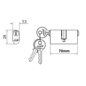 Cilindro imab 3000 zamack 70mm cromado O cilindro de segurança imab 3000 zamak, compacto duplo, monobloco, é produzido em zamak, com 5 pinos e contrapinos em latão, molas em aço inox. Segredos com tecnologia imab, com dentes e códigos gerados por computador. chaves em latão niqueladas e came duplo. Acabamento: cromado - cr Descrição técnica: cilindro 3000 zmk cr Material: zamak Quantidade chaves: 2 Tamanho: 70 mm Para portas de: até 55mm Para fechaduras imab que utilizam o padrão 3000 Acabamento: cromado Inclui maçaneta: não Material da caixa: zamak Modelo detalhado: 3000 70mm Quantidade de chaves: 2 Tipo de instalação: de embutir Tipo de trinco: inteiro
