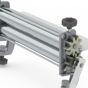Esse Laminador é fabricado em aço com laterais em alumínio e engrenagens em nylon. Seus cilindros laminadores de 2"x30,, são revestidos em cromo duro e a lâmina de apoio é confeccionada em aço com pintura epóxi.