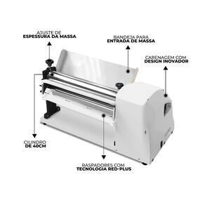 Cilindro Laminador Cromado Elétrico de Massas Pão Pizza Pastel 40cm Saro Voltagem: 220V O Cilindro Elétrico de Massas da Saro possui rolos de 40cm de largura. Extremamente robusto e com um design inovador, este laminador possui uma bandeja reclinável para entrada da massa, atribuindo mais agilidade, facilidade e praticidade durante o uso. Este cilindro serve para laminar, cilindrar ou até mesmo sovar massas de todos os tipos, inclusive massa biscuit e pasta americana. Capaz de preparar massas de 0 até 40cm de largura/diâmetro, este laminador possui capacidade de laminar até 0,6kgs de massa por vez. Com carenagem 100% de metal, pintura anti risco e motor de alta tecnologia, este equipamento possui ótima durabilidade para anos de uso. Características: - Possui sistema de segurança integrado de paralisação total - Ideal para - Rolo em aço cromado - Laterais reforçadas em Nylon - Lamina 20 metros de massa por minuto - Possui 4 rolamentos dentro dos cilindros - Rolo com 40cm de aproveitamento - Possui raspadores, para não grudar a massa e para manter o rolo limpo após o uso - Base em MDF laminado próprio para contato com o alimento. - Mesa de apoio reclinável - facilita a laminação sem que haja esforço manual - Pés emborrachados - evitam vibração e não derrapam com o uso - Motor 1/3 CV de alta performance - Produto certificado pelo INMETRO Especificações: - Material: Inox e Aço Carbono - Motor: 1/3CV - Frequência: 50/60Hz; Dimensões: - Comprimento: 58 cm - Largura: 25 cm - Altura: 25 cm - Peso: 10kg Itens inclusos: - 01 Cilindro Laminador Elétrico Branco 40cm Saro - 02 Manípulos para regulagem da espessura da massa - 01 Manual de Instruções : 6 meses de oferecidos pela Saro Informações Importantes Comprando conosco, sua compra será enviada muito bem protegida, além de possuir . Toda compra é enviada o mais rápido possível, no prazo máximo de 1 dia útil. Nós da Dalia Varejo temos compromisso com a rapidez Marca: Não Informado