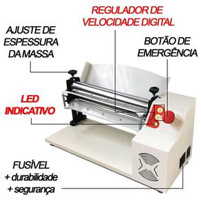 Essa cilindro laminador é um dos únicos que possui regulador de velocidade, para que você possa ajustá-lo conforma a necessidade de uso, além de rolos de 40cm para que você possa trabalhar as massas com mais facilidade. É extremamente robusto e possui bandeja para entrada da massa, permitindo maior agilidade e facilidade durante o uso do cilindro de massa.