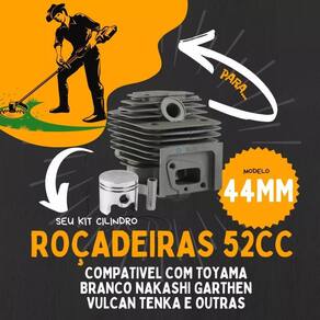 Bjb leia atentamente a descrição antes de comprar o produto - produto de alta qualidade e durabilidade. - aconselha-se um para manutenção do seu equipamento. - imagens meramente ilustrativas. ========================== Kit cilindro para roçadeiras Modelos: 52cc Diâmetro do cilindro: 44mm Compatibilidade: toyama, branco garthen, nakashi, trapp shindaiwa, kawashima, yamasaki e outras marcas. Embalagem: 1 cilindro + 1 pistão + 2 aneis + 1 pino + 2 travas do pino+ 1 kit de juntas + 1 vela de ignição l7t ========================== A os produtos são novos R: todos os produtos da são novos com do seu fabricante. D como são realizadas as entregas R: sim, desde que more perto de nossa loja física, localizada em capital. F os produtos possuem R: todos produtos possuem direto com o seu fabricante de no mínimo 3 meses de acordo com a lei. Esse prazo estará no anúncio. G -aceitamos troca de dados de faturamento após compra R: confira o seu endereço de entrega cadastrado, pois não aceitamos alterações do mesmo após a compra.