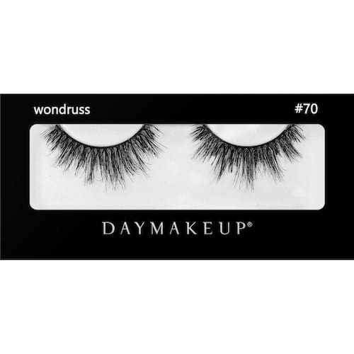 Os Cílios Postiços #70 Daymakeup faz parte da linha Wondrous (Maravilhosos) são de altíssima qualidade, de nível profissional. Seus fios em fibra sintética com tamanho mediano, várias camadas que agem com naturalidade e sofisticação no olhar. Possui base bem maleável.