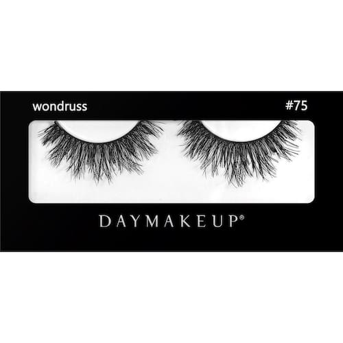 » DESCRIÇÃO Os Cílios Postiços 75 Daymakeup faz parte da linha Wondrous Maravilhosos são de altíssima qualidade, de nível profissional. Seus fios em fibra sintética com tamanho mediano, várias camadas que agem com naturalidade e sofisticação no olhar. possui base bem maleável.
