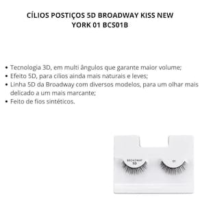 A linha 5d da broadway possui diversos modelos, para um olhar mais marcante até um olhar mais delicado. Feitos de fios sintéticos, possuem alta qualidade garantindo cílios de ótimo custo benefício. . Modo de uso: