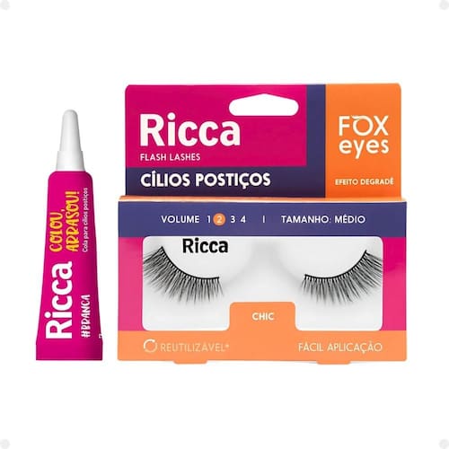 - 01 Par de Cílios Postiços Ricca Belliz Fox Eyes Chic Vol:2 Medio Cód.2692