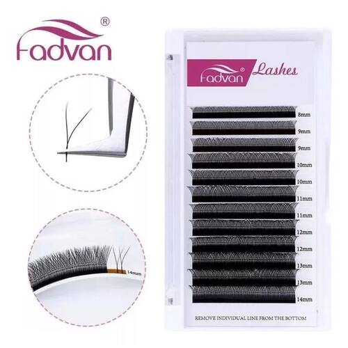 Este produto é um Estojo de cílios Y Fadvan MIX, disponível em dois tamanhos: de 8 a 12mm ou de 8 a 14mm. É importante que você escolha o tamanho MIX que mais lhe agrada. Os cílios possuem curvatura D e espessura de 0,07.