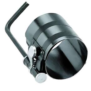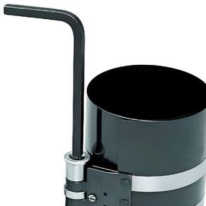 A Cinta Compressora para Anéis de Pistão é indicada para utilização em montagem do pistão com anéis no cilindro. Cinta em aço mola especial sendo assim muito resistente. Possui fixadores com acabamento escurecido, eixo com acabamento niquelado e cromado.