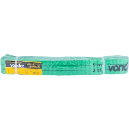Possui excelente resistência, flexibilidade e facilidade no manuseio, reduzindo o esforço durante a operação, além de oferecer menor risco ou danos na movimentação de cargas. Cinta plana de elevação de carga tipo anel.