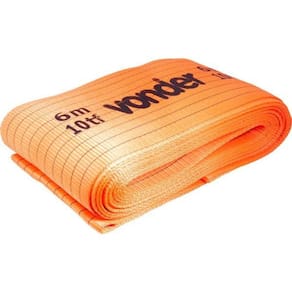 Possui excelente resistência, flexibilidade e facilidade no manuseio, reduzindo o esforço durante a operação, além de oferecer menor risco ou danos na movimentação de cargas. Cinta plana de elevação de carga tipo anel.