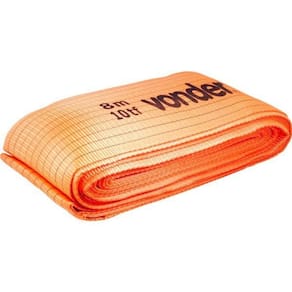 Possui excelente resistência, flexibilidade e facilidade no manuseio, reduzindo o esforço durante a operação, além de oferecer menor risco ou danos na movimentação de cargas. Cinta plana de elevação de carga tipo anel.