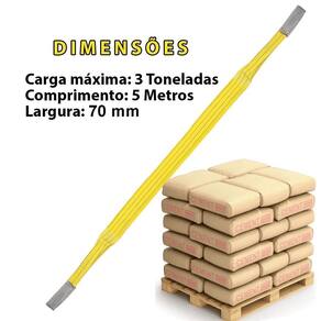 Cinta de elevação reboque carga 3 toneladas 6 metros 70mm reforçada