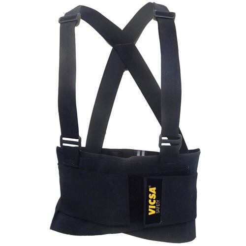 Cinta ergonômica confeccionada em elástico reforçado, costura em nylon de alta resistência que garante durabilidade, hastes de pvc maleável na região lombar para evitar deformação da faixa lombar, possui ajuste duplo, suspensórios confeccionados em elástico com regulagem de comprimento e tiras aderentes de máxima aderência.