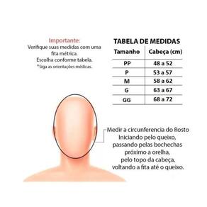 É fácil de vestir e super confortável, possui fechos auto-colante e costuras externas para evitar marcas ou incômodos na face.