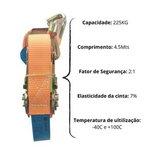 Cinta laranja em poliéster 4,5mt para amarração até 225kg As catracas são equipamentos para amarração de materiais de cargas durante o seu transporte. Utiliza atração para garantir a estabilidade dos materiais. Os itens são essenciais para garantir a estabilidade e conservação da carga que está sendo transportada, sendo necessário entender o funcionamento do produto adquirido e aliar o seu uso a outros acessórios, além das catracas móveis. As cintas de amarração de cargas com catraca da seavix são fabricadas de acordo com a norma brasileira nbr 15883-2 e tem fator de segurança aplicado de 2:1, indicada para amarração e elevação de cargas em geral em caminhões, containers, veículos, motos, barcos, tendas, palcos de eventos, caixas de som e geladeiras. Transporte com total segurança. Resistente aos raios solares. Informações adicionais Nosso código: 5171 Capacidade: 225kg Comprimento: 4.5mts Largura da cinta: 25mm 100% poliéster Temperaturade ultilização: -40c a +100c Fabricada de acordo com a norma brasileira nbr 15883-2 Fator de segurança: 2:1 Elasticidade da cinta: 7% Verifique as condições da cinta antes de usar Nunca ultilize o produto em cargas superiores ao kg informado Proteger as cintas de arestas cortantes Não amarre obliguamente Proibido o uso de alavanca no punho da catraca movel Proibido para levantamento de cargas Itens incluso 01 cinta laranja em poliéster 4,5mt para amarração até 225kg Porto náutico - sua loja náutica Marca: Não Informado