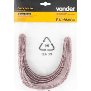 Ref. Fornecedor:1237454060marca:vonderconteúdo da Embalagem:5 Cintas de lixaDestaques e diferenciais:Possui costado de pano que proporciona maior resistência.Aplicações e dicas de uso:Indicada para lixadeiras de cinta a bateria VONDER e DWT, modelos: ILCV 1812 e ILCD 1812Características Técnicas:Indicado para:: Madeira Grão: G 60 Tipo de grão abrasivo: Carbeto de silício Tipo de costado: Tecido Largura da cinta de lixa: 15 mm Comprimento da cinta de lixa: 454 mm Ean: 7893946617738