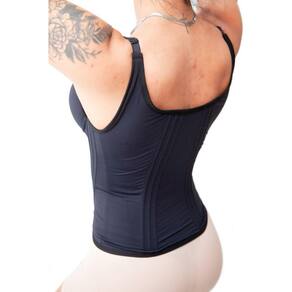 •Possui 12 Barbatanas distribuídas na peça, sendo 6 nas costas e 6 na frente (as barbatanas são hastes flexíveis de silicone, fixadas no tecido, com forro 100% algodão. Elas ajudam a proporcionar maior sustentação no abdômen e coluna, além de evitar que o espartilho enrole no corpo);