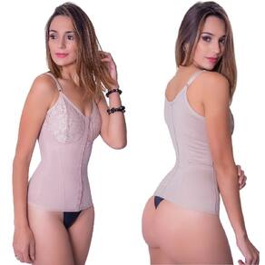 Cinta Modeladora Corpete Corselet com barbatanas, modelagem de alta compressão, alças largas e ajustável, fecho frontal com colchete reforçado e dupla regulagem, renda no acabamento do bojo e costuras externa para proporcionar maior conforto.