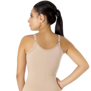 Modelador pós cirúgico em tecido confort corpo pele, confeccionada com tecido de alta compressão, desenvolvido com fio amni e lycra, possui acabamento bactericida que evita a proliferação de bactérias no tecido, causadores de odor pela transpiração.