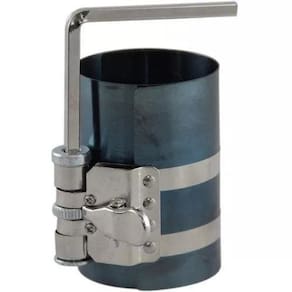 Abraçadeira fabricada com aço mola de alta qualidade Mecanismo com trava dupla ação Bordas anguladas permitem que a ferramenta introduza o pistão no cilindro do motor com facilidade Possui catraca Acompanha chave