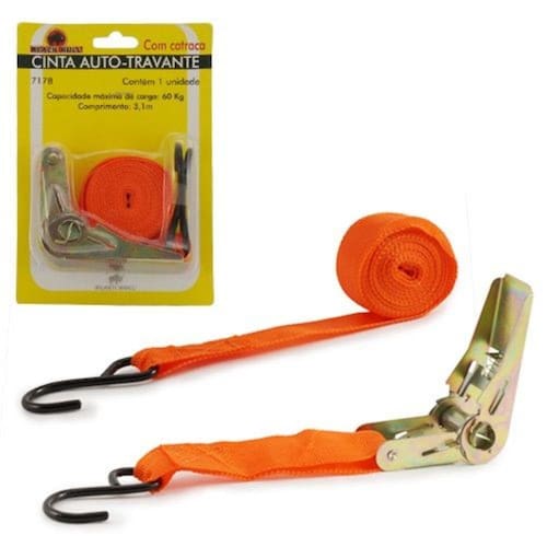 .Ideal para transportar:- Motos- Jet-Ski- Barcos- Carrinhos de Mão- Cargas em Peck-UpConteúdo da Embalagem:01 Cinta com Catraca para Amarração Composição: Ferro, fibra de polipropileno