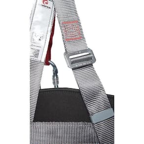 Esse cinturão de segurança possui 06 fivelas duplas em aço, que permitem ajustes precisos nas pernas, cintura e suspensório. Além disso, conta com 01 meia argola em aço com ponto de conexão dorsal, 02 meia argolas em aço na cintura utilizadas para posicionamento, 01 meia argola em aço com ponto de conexão peitoral e 01 meia argola de engate umbilical para resgate.