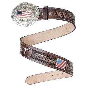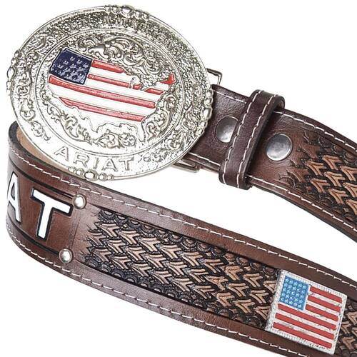 Cinto Ariat Country em Couro Artesanal Fivela Removivel Texturizado American EUA Festa Peao Rodeio - Marrom - 90
