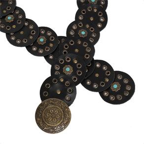 Cinto Boho Chique Classico Country Feminino Redondo Rebite de Flor Moderno Fivela Metal Ouro Velho - Preto - GG