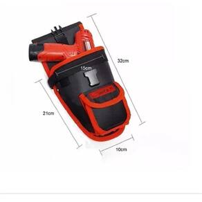 Esse coldre bolsa, além de servir para carregar sua parafusadeira ou furadeira, também permite que você carregue brocas, parafusos, etc.