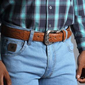 Um Cinto unissex de alta qualidade da nossa marca exclusiva Cow Way, este fabricado em couro estilo Avestruz na cor Caramelo seguindo o design e tendências atuais, possui correia com 4,3cm de largura no centro e 3,8cm nas ponteiras. Este modelo vem costurado ao longo da superfície. Tanto a fivela estilizada como o passador são removíveis, podendo ser trocados pelo usuário a qualquer momento.