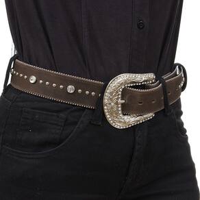 O Cinto de Couro da marca Cow Way é uma peça de vestuário excepcionalmente elegante e única. Feito de couro de alta qualidade, este cinto é durável e resistente, proporcionando um ajuste confortável e seguro para o usuário. O destaque do cinto são as pedras refletivas fixadas ao longo do couro costurado, todas são meticulosamente trabalhadas com detalhes intrincados e são feitas de um metal resistente que é altamente durável. Esses elementos metálicos adicionam um toque de elegância e brilho ao cinto, elevando sua aparência para um novo patamar. Com um fecho de fivela ajustável, o cinto de couro da Cow Way é um acessório versátil e prático para qualquer guarda-roupa.