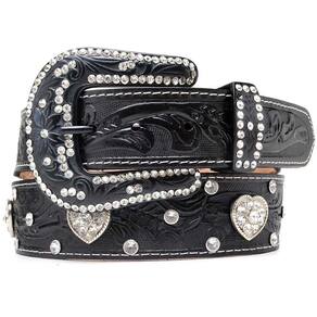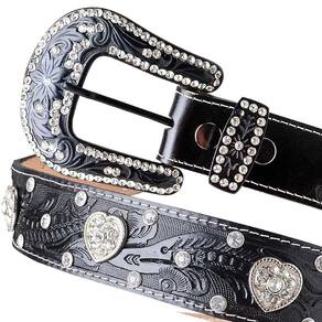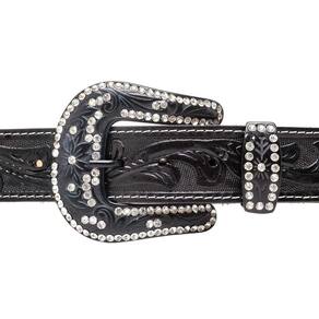 Cinto Couro Country Feminino Boiadeira Rodeio Muladeiro Fivela Redonda Com Strass de Qualidade - Preto - 100