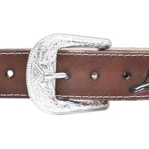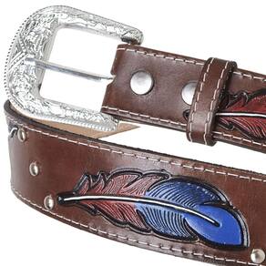 Cinto Couro Fivela Simples Texturizado Detalhe de Pena Moderno Rodeio Festa Country Classico - Marrom - 115