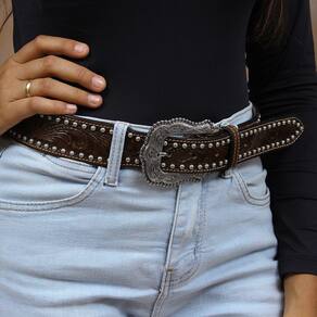 O Cinto de Couro da marca Paul Western é uma obra-prima artesanal. O couro é selecionado com cuidado para garantir a qualidade e durabilidade do produto com 4,3cm de largura no meio e 3,6cm na ponta. A peça esta toda adornada por pequenas pedras cuidadosamente selecionadas. O processo de entalhe é realizado por artesãos experientes que criam desenhos e padrões únicos no couro, resultando em um acabamento elegante e distinto. A fivela customizada é outro aspecto notável deste cinto. Feita de materiais de alta qualidade, a fivela é adornada com detalhes meticulosamente trabalhados que dão ao produto um toque de personalidade e exclusividade. A marca Paul Western é conhecida por sua habilidade em criar fivelas que se destacam pela sua beleza e singularidade. Além disso, a qualidade do couro e a atenção aos detalhes na produção garantem que o cinto tenha uma longa vida útil e mantenha sua beleza por muitos anos.