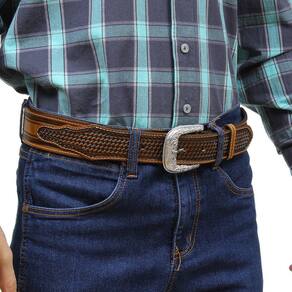 Cinto unissex na qualidade Cow Way, fabricado em couro na cor Marrom seguindo o design e tendências atuais, possui correia totalmente bordada (entalhada), com 4,6cm de largura no centro e 3,9cm nas ponteiras. Este modelo vem costurado ao longo da superfície. Tanto a fivela estilizada como o passador são removíveis, podendo ser trocados pelo usuário a qualquer momento.