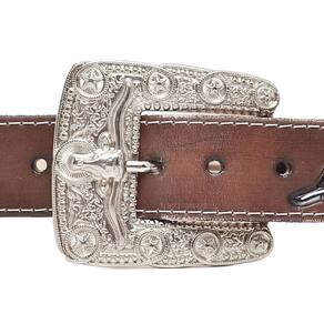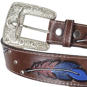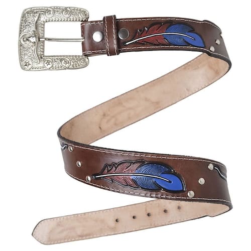 Cinto de Couro Rodeio Western Fivela Quadrada Removivel Estampa de Pena Alto Relevo Cavalgada - Marrom - 95