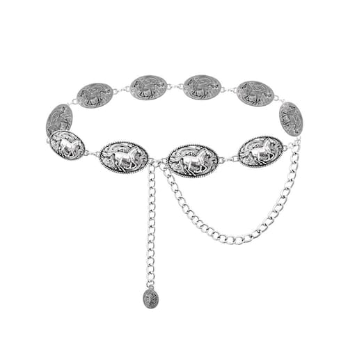 Cintos de corrente de prata de cavalo para roupas ocidentais - ?Observe o tamanho? Cintos ocidentais para mulheres, conchos de metal envolvem totalmente a cintura 71,1 cm (P) / 81,3 cm (M) / 91,4 cm (G), ajuste de cintura até 89 cm (P) / 101,6 cm (M) / 114,3 cm (C) pela corrente de extensão. - ?Encantador e requintado? Cinto de cowboy para mulheres, com detalhes complexos e materiais de alta qualidade. Este cinto é mais do que apenas um acessório; é uma peça de declaração que adiciona um toque de sofisticação a qualquer conjunto. - ?Adequado para qualquer ocasião? Cinto Concho para mulheres, fica incrível com qualquer roupa. Excelente para combinar com seus vestidos, saias, camisas, jeans, calças de couro, roupas de biquíni, em diferentes ocasiões, como trabalho, compras, viagens, festas, carnaval, encontros, boates. - ?Estável e confortável? Roupa de vaqueira feminina, nosso cinto de vaqueira garante um ajuste estável e confortável que permanece no lugar durante todo o dia. Se você estiver dançando em um show ou simplesmente curtindo uma reunião temática country, este cinto é seu companheiro confiável. - ?Presente incrível para ela? Cinto de rodeio para mulheres, será um presente de aniversário maravilhoso, presente de formatura, presente de aniversário de casamento, presente de férias, presente de dia dos namorados, presente de dia das mães, presente de Páscoa, presente de Ação de Graças, presente de Natal.