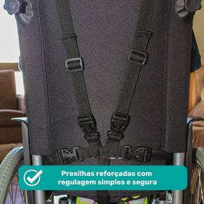 Com ele, é possível evitar quedas e tombamentos, já que o acessório impede a inclinação excessiva do tronco para frente ou para os lados.