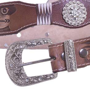CARACTERÍSTICAS DO PRODUTO Material: Couro Fechamento: Fivela com Strass Material Interno: Couro Estilo da Peça: Texturizado