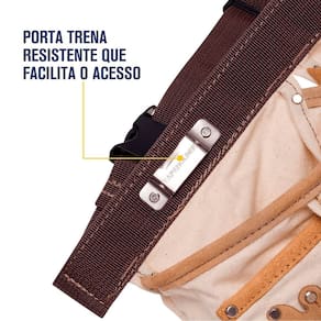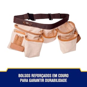 O Cinto para Ferramentas IW14086 possui 10 bolsos, 1 porta-martelo e 1 porta-trena.
