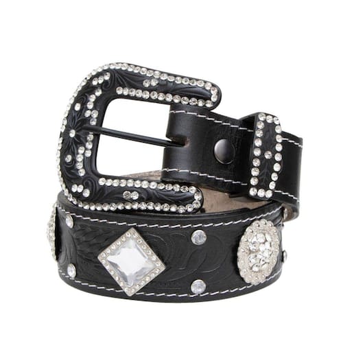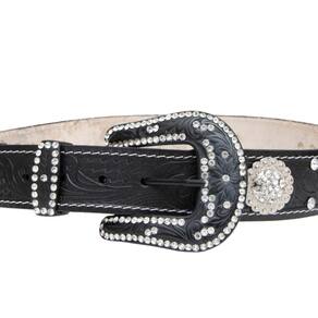 Cinto Fivela Tradicional Couro Feminino Com Aplicações Strass Brilho Moderno Barretos - Preto - 95