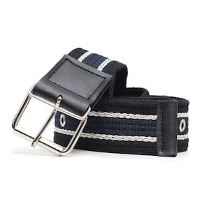 Cinto Gorgurao Lona Tecido Listras Masculino Ajuste Fivela Aço Reforçada Detalhe Em Couro - Preto - 120