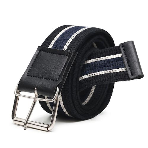 Cinto Gorgurao Plus Size Lona Tecido Listras Masculino Ajuste Fivela Aço Reforçada Detalhe Em Couro - Preto - 150