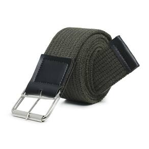 Cinto Lona Gorgurao Tecido Liso Masculino Ajuste Fivela Reforçada Aço Detalhe Em Couro - Verde - 130