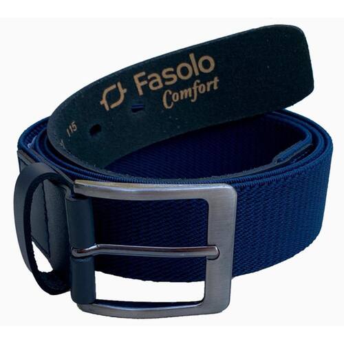 Cinto Masculino Elástico De Couro Fivela Fasolo 188 Cor: Azul Marinho Tamanho: 105 Cinto Esportivo em Couro e Elástico, possui um passante, fivela em acabamento grafite escovado e ponteiras em couro.