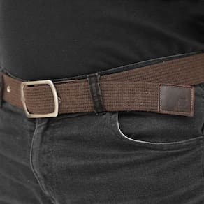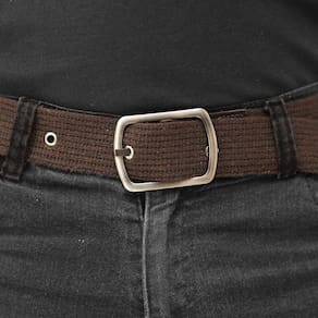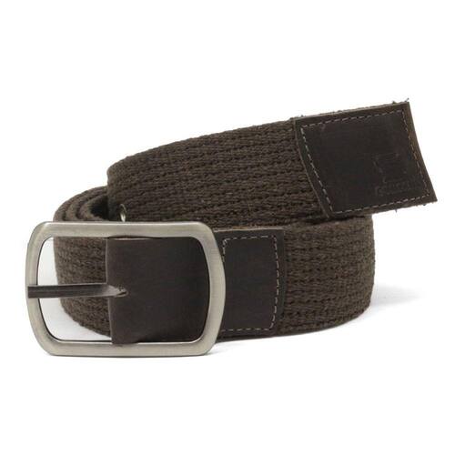 Cinto Masculino Lona Gorgurao Detalhe Couro Liso Ajuste Fivela Metal Casual Alta Qualidade - Marrom - 110