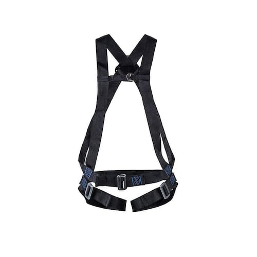 Cinturão de segurança do tipo paraquedista com 1 ponto de conexão; Conexão dorsal, uma argola "d" inclinada, em aço - utilizada para retenção de queda a ; Confeccionado em material sintético, poliéster; Costuras zig-zag athenas: desenvolvidas para proporcionar grande resistência, realizadas em máquinas automatizadas; Fivelas duplas de aço para ajustes nas pernas e cintura. Aplicação: Trabalho em altura na retenção de queda.